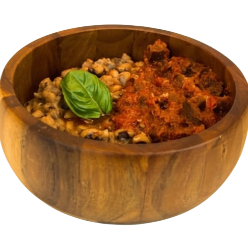 Cooked beans served with beef, either mixed or as a side.